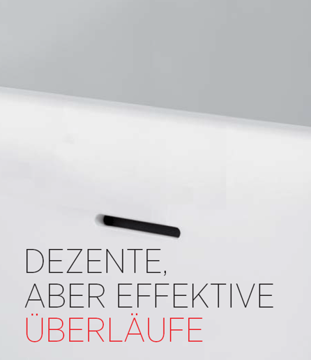 - Die stilvoll zurückhaltend, integrierten Überlauflöcher der Xonyx-Badewannen sind kaum wahrnehmbar und gewährleisten dennoch effizient ihre Funktion.